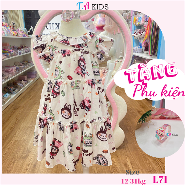 L71 (12-31kg) Váy labubu màu kem